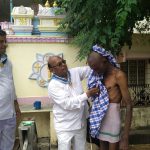 Sairam with Divine blessings by a call of A I P Sri Nimesh Pandya garu and S P Sri S G Chalam garu a mentally disabled person named sarinivasa Reddy who studied B Com brought to mandir and offered Break fast . After that shaved his hair, bathing him with shampoo, given new clothes and a bed sheet. And encouraged him to put Namskaram to Swamy